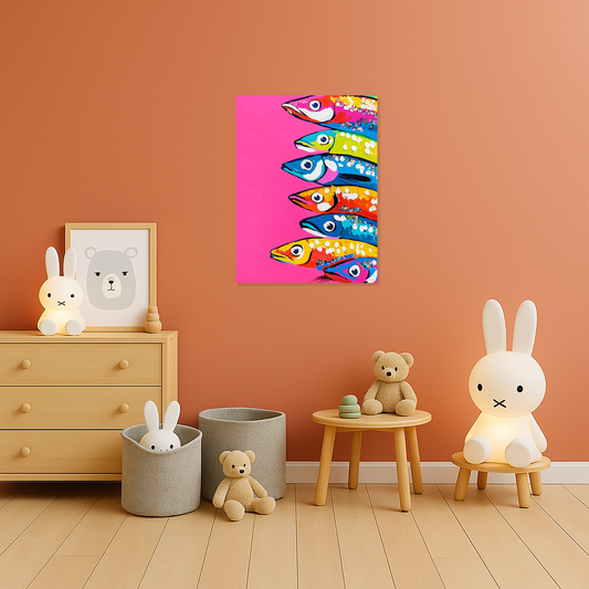 Felgekleurde vissen op roze achtergrond