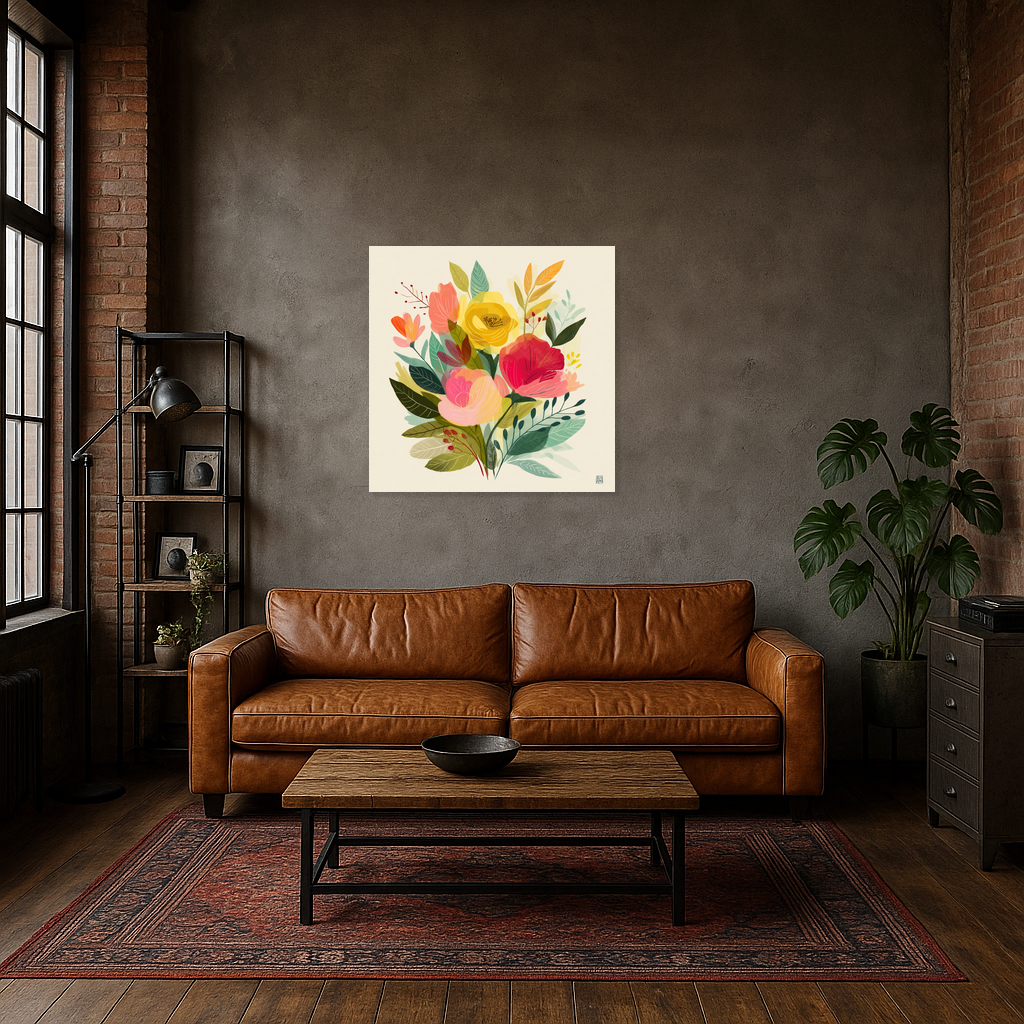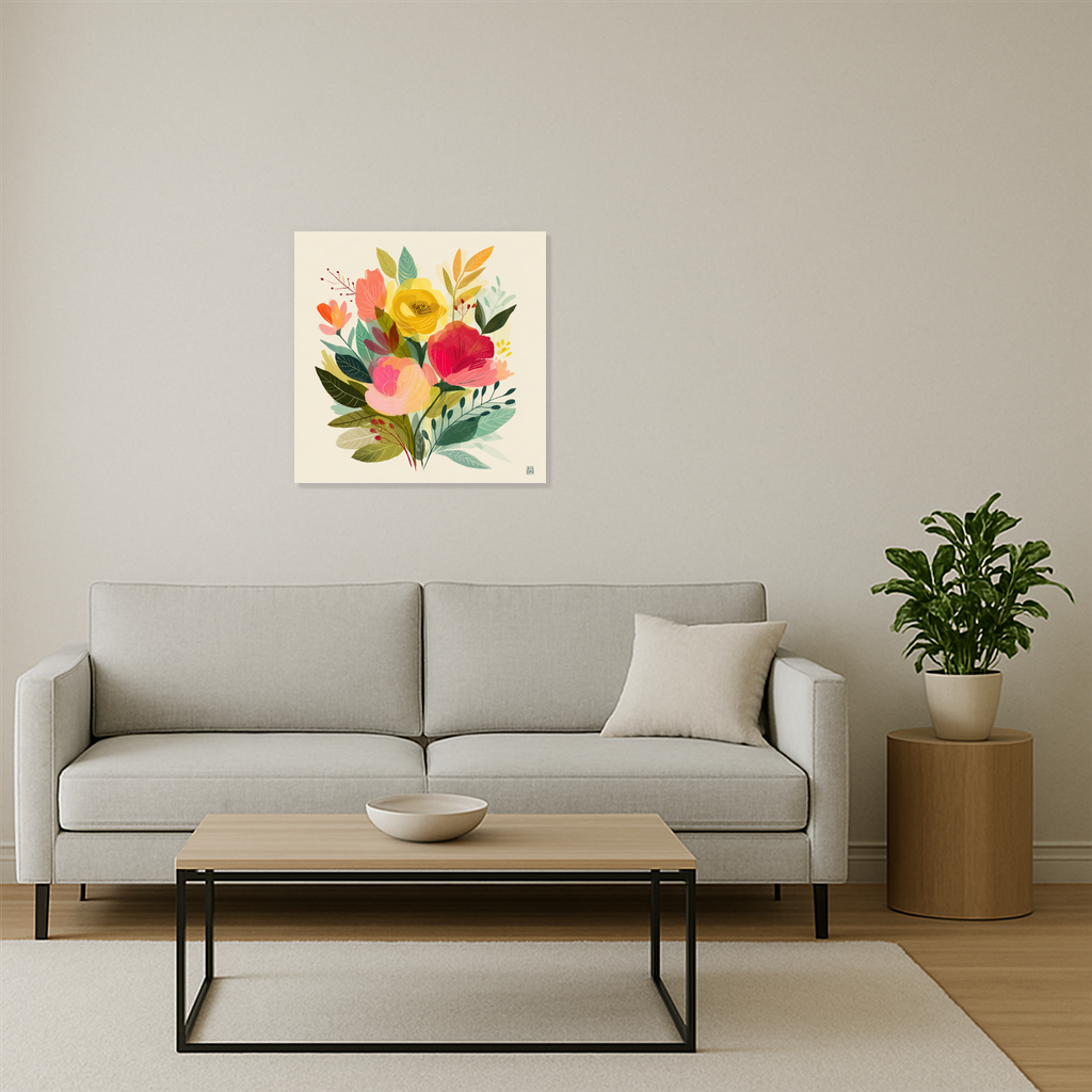 Voel je het al? Dit schilderij brengt de natuur naar binnen met levendige bloemen die je ruimte direct opfleuren. Rijke tinten rood, geel en groen dansen op het doek en geven een frisse energie aan je muur.