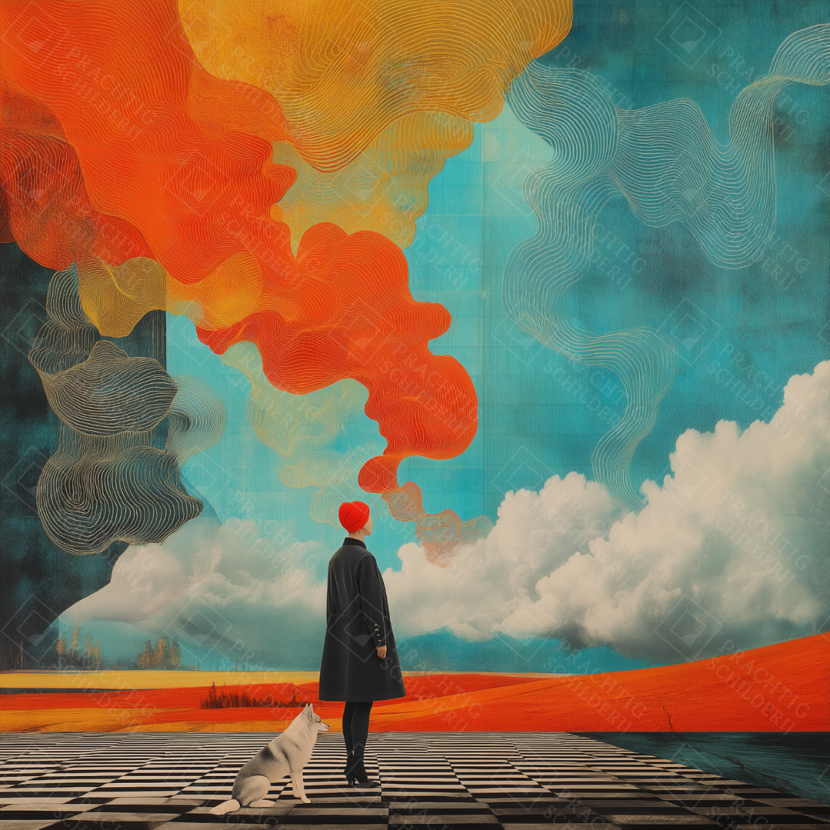 Klaar voor een visueel avontuur? Dit werk trekt je de horizon in met een samenspel van rode en oranje wolken die dansen boven uitgestrekte velden. Het contrast tussen de lucht en de aarde geeft je ruimte een eigen verhaal. Beeld je in dat je met een kop koffie in je hand naar deze levendige kleuren kijkt, terwijl de wereld voorbijgaat.