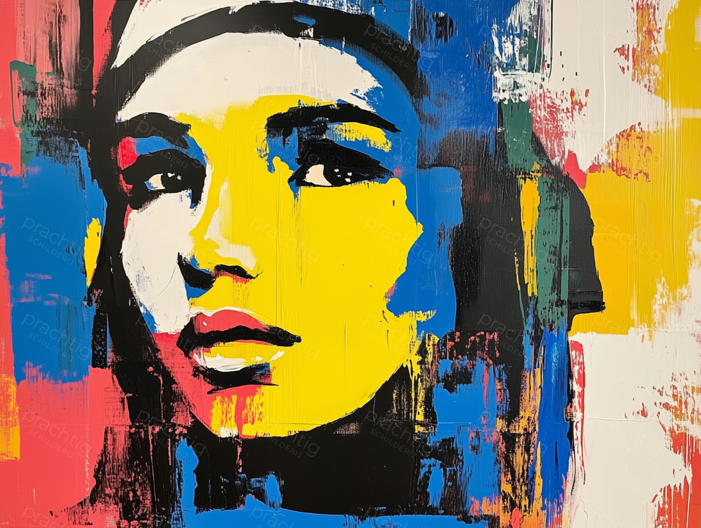 Dit schilderij vangt direct je aandacht met een krachtig vrouwelijk portret. De felle kleuren geel, blauw en rood zorgen voor een levendige en dynamische uitstraling. Het gebruik van dikke verfstreken geeft het werk een tastbare textuur en diepte. De abstracte achtergrond contrasteert mooi met het gedetailleerde gezicht, wat een interessante spanning creëert. De krachtige blikken en de gedurfde kleurblokken roepen gevoelens van zelfvertrouwen en expressie op. Dit werk past prachtig in een moderne woonkamer of creatieve studieruimte, waar je een vleugje energie wilt toevoegen.